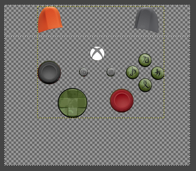 Pour les boutons, le challenge va être de bien les détourer avec l’outil de sélection de couleur ou contigu et en jouant sur les seuils, le but va être de les isolés dans un .png dédié.