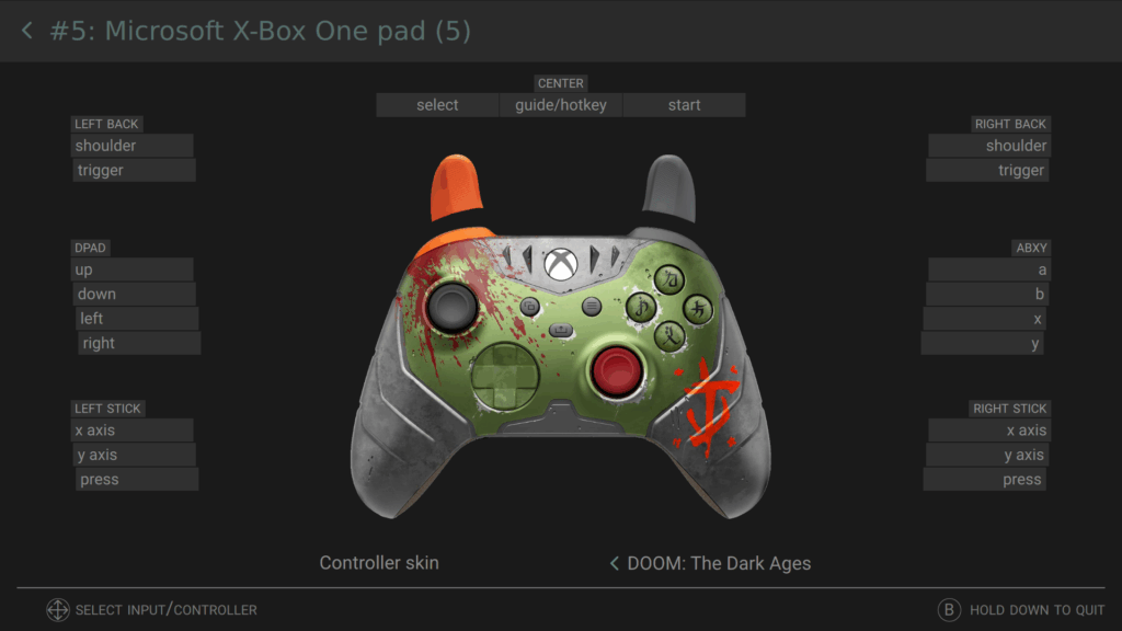 En fait, on peut gérer des « layout » de style de manettes si besoin, par exemple, à ce jour on a le « layout » SNES qui sait géré des manettes avec 4 boutons + L1/R1 + L2/R2 (comme sur la switchj 😉 et un DPAD, mais sans sticks et seulement avec start/select et pas de touche dédié pour la hotkey.