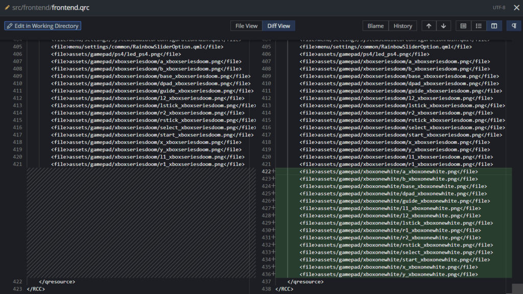 on va rajouter les fichier de base (exemple: « base_snes.png ») & des touches (exemple: « x_snes.png ») dans le répertoire: src/frontend/assets/gamepad/{XXXXX} acronyme du pad et il faudra les rajouter aussi dans le projet pour être pris en compte dans le .qrc correspondant.