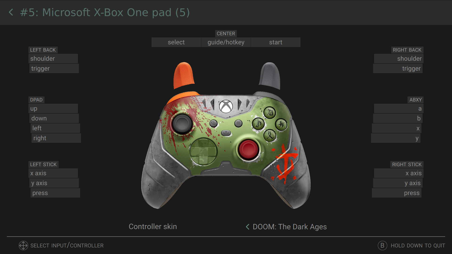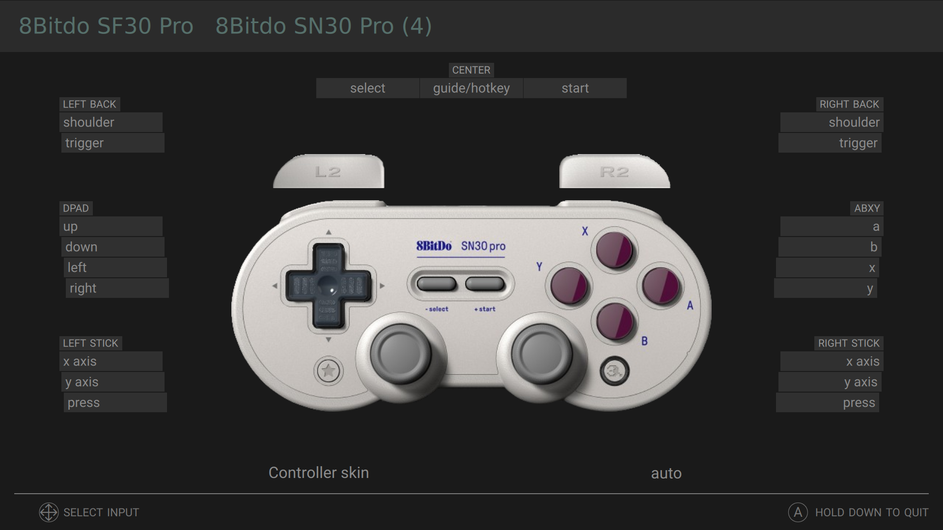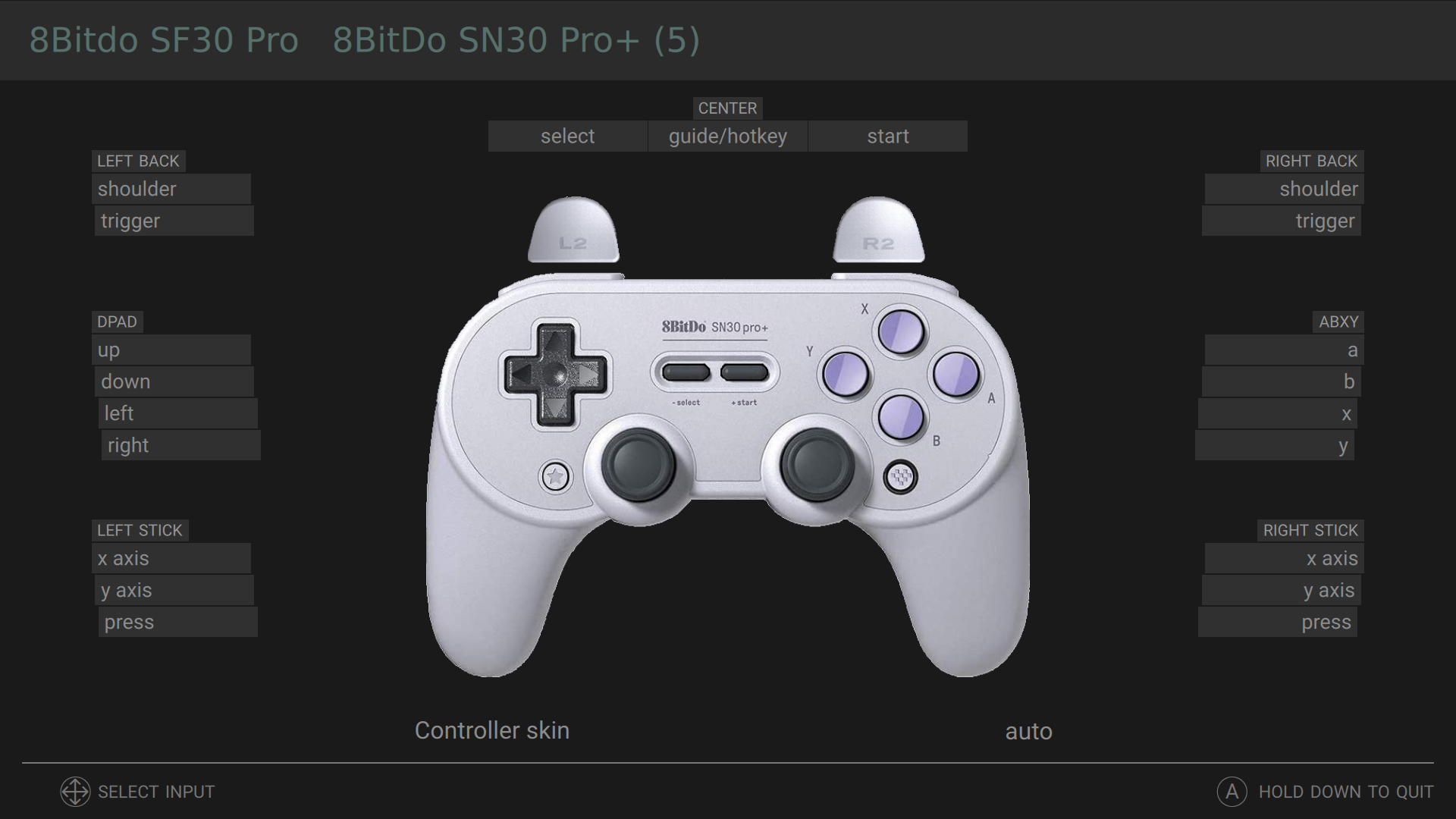 En fait, on peut gérer des « layout » de style de manettes si besoin, par exemple, à ce jour on a le « layout » SNES qui sait géré des manettes avec 4 boutons + L1/R1 + L2/R2 (comme sur la switchj 😉 et un DPAD, mais sans sticks et seulement avec start/select et pas de touche dédié pour la hotkey.
