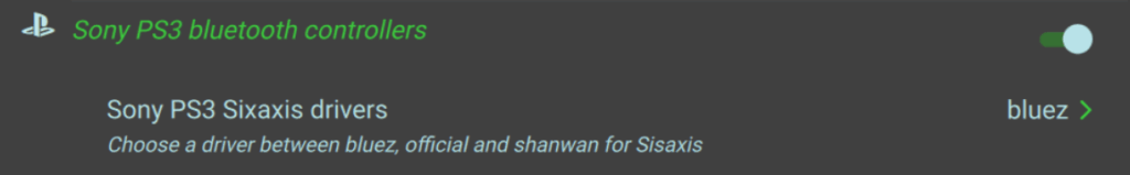 Il y a aussi le cas des pads Sony PS3 que l’on peut activer et on peut sélectionner le driver (nécessite un reboot)